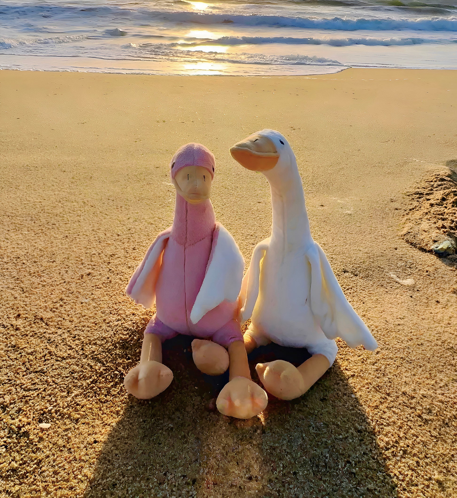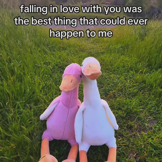 Graceful, cozy, and made to cuddle together. "The Swans" are our signature couple set. Each swan is stitched with a gentle curve so they nestle side-by-side together. Soft, safety-tested fabrics and plush fill make them perfect for movie nights, proposals, anniversaries, and “just because.”